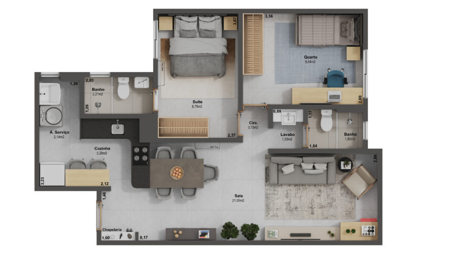 Sala e suíte (previsão)